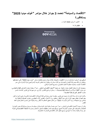 اهتفاضتسا يتلا ،" 2025 ايديم فوغ" رمتؤم تايلاعف نمض زئاوج ثلاثب ،ةحايسلاو داصتقلاا ةرازو تزاف /ماو/ ويلوي 7 يف يبظوبأ