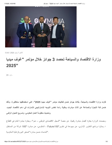 7/10/25, 4:00 PM 24 ﻊﻗوﻣ - "2025 ﺎﯾدﯾﻣ فوﻏ" رﻣﺗؤﻣ لﻼﺧ زﺋاوﺟ 3 دﺻﺣﺗ ﺔﺣﺎﯾﺳﻟاو دﺎﺻﺗﻗﻻا ةرازو