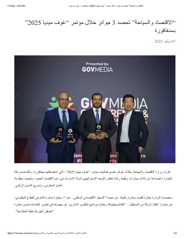”2025 ﺎﯾﺪﯿﻣ فﻮﻏ“ ﺮﻤﺗﺆﻣ لﻼﺧ ﺰﺋاﻮﺟ 3 ﺪﺼﺤﺗ ”ﺔﺣﺎﯿﺴﻟاو دﺎﺼﺘﻗﻻا“
