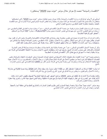 7/10/25, 4:01 PM "ةروﻓﺎﻐﻧﺳﺑ "2025 ﺎﯾدﯾﻣ فوﻏ" رﻣﺗؤﻣ لﻼﺧ زﺋاوﺟ 3 دﺻﺣﺗ "ﺔﺣﺎﯾﺳﻟاو دﺎﺻﺗﻗﻻا - Fana News