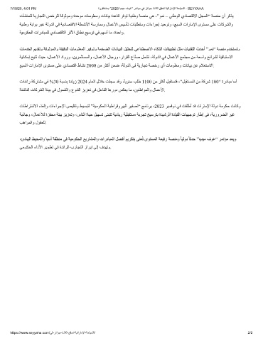 ﻊﺒﺴﻟا تارﺎﻣﻹا ىﻮﺘﺴﻣ ﻰﻠﻋ يدﺎﺼﺘﻗا طﺎﺸﻧ 2000 ﻦﻣ ﺮﺜﻛأ ﻦﻤﺿ ،ﺔﻟوﺪﻟا ﻲﻓ ﺔﯾرﺎﺠﺗ ﺔﺼﺧر يأ تﺎﻣﻮﻠﻌﻣو تﺎﻧﺎﯿﺑ ﻦﻋ مﻼﻌﺘﺳﻻا.