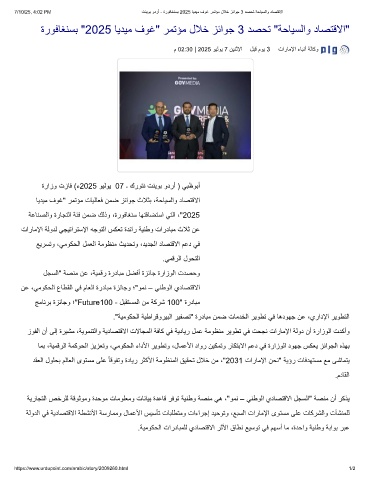 ةروﻓﺎﻐﻧﺳﺑ "2025 ﺎﯾدﯾﻣ فوﻏ" رﻣﺗؤﻣ لﻼﺧ زﺋاوﺟ 3 دﺻﺣﺗ "ﺔﺣﺎﯾﺳﻟاو دﺎﺻﺗﻗﻻا"