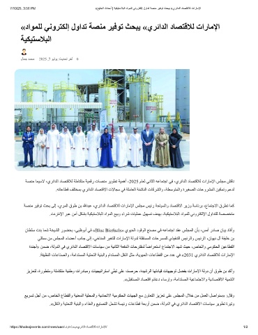 7/10/25, 3:56 PM «ﺞﯾﻠﺧﻟا ثادﺣأ | ﺔﯾﻛﯾﺗﺳﻼﺑﻟا داوﻣﻠﻟ ﻲﻧورﺗﻛﻟإ لوادﺗ ﺔﺻﻧﻣ رﯾﻓوﺗ ثﺣﺑﯾ «يرﺋادﻟا دﺎﺻﺗﻗﻼﻟ تارﺎﻣﻹا