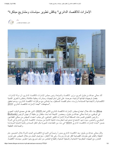 يوﯾﺣﻟا دوﻗوﻟا ﻊﻧﺻﻣ ﻲﻓ دﻘﻋ يذﻟا ،2025 مﺎﻌﻟ ﻲﻧﺎﺛﻟا يرﺋادﻟا دﺎﺻﺗﻗﻼﻟ تارﺎﻣﻹا سﻠﺟﻣ عﺎﻣﺗﺟا لﻼﺧ كﻟذ ءﺎﺟ (Blue