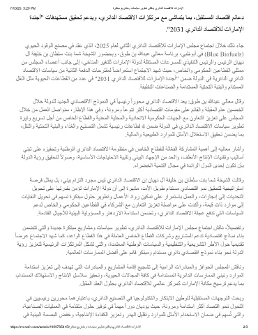 يﻮﯿﺤﻟا دﻮﻗﻮﻟا ﻊﻨﺼﻣ ﻲﻓ ﺪﻘﻋ يﺬﻟا ،2025 مﺎﻌﻟ ﻲﻧﺎﺜﻟا يﺮﺋاﺪﻟا دﺎﺼﺘﻗﻼﻟ تارﺎﻣﻹا ﺲﻠﺠﻣ عﺎﻤﺘﺟا لﻼﺧ ﻚﻟذ ءﺎﺟ