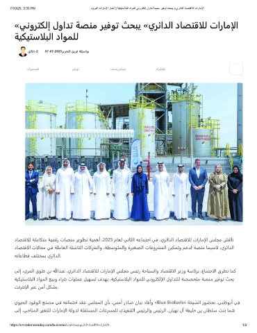 7/10/25, 3:30 PM «موﯾﻟا تارﺎﻣﻹا رﺎﺑﺧأ | ﺔﯾﻛﯾﺗﺳﻼﺑﻟا داوﻣﻠﻟ ﻲﻧورﺗﻛﻟإ لوادﺗ ﺔﺻﻧﻣ رﯾﻓوﺗ ثﺣﺑﯾ «يرﺋادﻟا دﺎﺻﺗﻗﻼﻟ تارﺎﻣﻹا