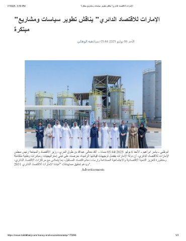 7/10/25, 3:30 PM "ةرﻛﺗﺑﻣ ﻊﯾرﺎﺷﻣو تﺎﺳﺎﯾﺳ رﯾوطﺗ شﻗﺎﻧﯾ "يرﺋادﻟا دﺎﺻﺗﻗﻼﻟ تارﺎﻣﻹا