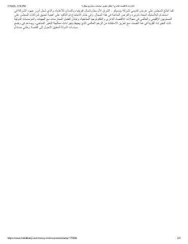 7/10/25, 3:30 PM "ةرﻛﺗﺑﻣ ﻊﯾرﺎﺷﻣو تﺎﺳﺎﯾﺳ رﯾوطﺗ شﻗﺎﻧﯾ "يرﺋادﻟا دﺎﺻﺗﻗﻼﻟ تارﺎﻣﻹا