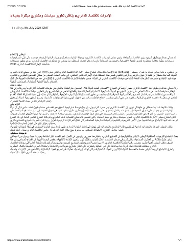 لﻘﻧﻟا لﺛﻣ ﺔﯾوﯾﺣﻟا تﺎﻋﺎطﻘﻟا نﻣ ددﻋ ﻲﻓ «2031 يرﺋادﻟا دﺎﺻﺗﻗﻼﻟ تارﺎﻣﻹا ةدﻧﺟأ» نﻣﺿ ،ﺔﻟودﻟا ﻲﻓ يرﺋادﻟا دﺎﺻﺗﻗﻻا تﺎﺳﺎﯾﺳ نﻣ ﺔﯾﻧﺎﺛﻟا ﺔﻌﻓدﻟا تﺎﺣرﺗﻘﻣﻟ ً ﺎﺿارﻌﺗﺳا عﺎﻣﺗﺟﻻا دﮭﺷ ثﯾﺣ