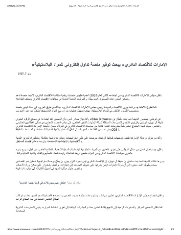 7/10/25, 3:31 PM «نﯾوﺎﻧﻌﻟا - ﺔﯾﻛﯾﺗﺳﻼﺑﻟا داوﻣﻠﻟ ﻲﻧورﺗﻛﻟإ لوادﺗ ﺔﺻﻧﻣ رﯾﻓوﺗ ثﺣﺑﯾ «يرﺋادﻟا دﺎﺻﺗﻗﻼﻟ تارﺎﻣﻹا