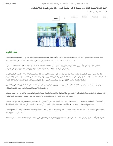 7/10/25, 3:31 PM «ﺞﯾﻠﺧﻟا ضﺑﻧ - ﺔﯾﻛﯾﺗﺳﻼﺑﻟا داوﻣﻠﻟ ﻲﻧورﺗﻛﻟإ لوادﺗ ﺔﺻﻧﻣ رﯾﻓوﺗ ثﺣﺑﯾ «يرﺋادﻟا دﺎﺻﺗﻗﻼﻟ تارﺎﻣﻹا