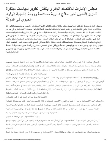 ﺔﯾوﯾﺣﻟا تﺎﻋﺎطﻘﻟا نﻣ ددﻋ ﻲﻓ "2031 يرﺋادﻟا دﺎﺻﺗﻗﻼﻟ تارﺎﻣﻹا ةدﻧﺟأ" نﻣﺿ ﺔﻟودﻟا ﻲﻓ ﺔﯾرﺋادﻟا يرﺋادﻟا دﺎﺻﺗﻗﻻا تﺎﺳﺎﯾﺳ نﻣ ﺔﯾﻧﺎﺛﻟا ﺔﻌﻓدﻟا