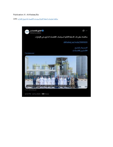 Publication: X – Al Khaleej Biz Link: تاراملإا يف يرئادلا داصتقلاا تاسايسل ةيناثلا ةعفدلا تاحرتقم ةشقانم