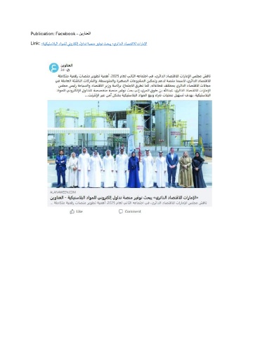 Publication: Facebook - نيوانعلا Link: «ةيكيتسلابلا داوملل ينورتكلإ لوادت ةصنم ريفوت ثحبي »يرئادلا داصتقلال تاراملإا