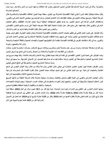 لﻼﺧ ﺔﯾرﺎﻣﺛﺗﺳﻻاو ﺔﯾدﺎﺻﺗﻗﻻا تﺎﻗﻼﻌﻟا زﯾزﻌﺗﻟ ﺔﻣﮭﻣ ﺔطﺣﻣ ،نﯾدﻠﺑﻟا نﯾﺑ ﺔﻛرﺗﺷﻣﻟا ﺔﯾدﺎﺻﺗﻗﻻا ﺔﻧﺟﻠﻟ ﻰﻟوﻷا ةرودﻟا دﺎﻘﻌﻧا لّﻛﺷُﯾ«:ﮫﺗدﺎﻌﺳ لﺎﻗو