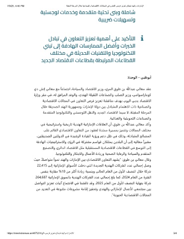 ﺚﻴﺣ ،ًالﺻاﻮﺘﻣ ًاﻮﻤﻧ ﺪﻨﻬﻟاو تارﺎﻣإلا ﻦﻴﺑ يدﺎﺼﺘﻗالا نوﺎﻌﺘﻟا ﺪﻬﺸﻳ“ :قﻮﻃ ﻦﺑ ﻲﻟﺎﻌﻣ لﺎﻗو