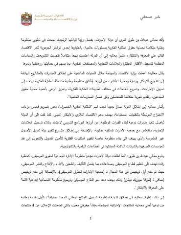 ةوطخك ،ىقيسوملا قوقحل ةيعامجلا ةرادلإا ةموظنم ً ارخؤم تاراملإا ةلود تقلطأ امك " :قوط نب للهادبع يلاعم عباتو