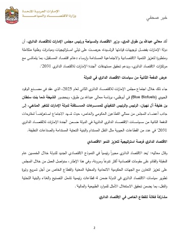 نأ ، ي رئادلا داااصتقلال تاراملإا سلجم سيئرو ةحايااسلاو داااصتقلاا ريزو ،ي رملا قوط نب اللهدبع يلاعم دكأ