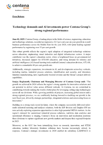 June 02, 2025: Centena Group, a leading player in the fields of science, engineering, education