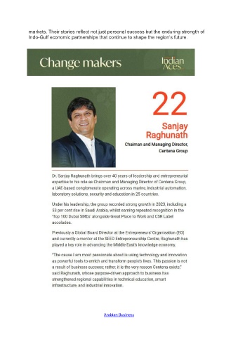 markets. Their stories reflect not just personal success but the enduring strength of Indo-Gulf economic partnerships that continue to shape the region’s future. Arabian Business
