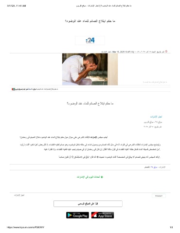 3/17/25, 11:41 AM موﯾ لﻛ ﻊﻗوﻣ - تارﺎﻣﻹا رﺎﺑﺧا | ؟ءوﺿوﻟا دﻧﻋ ءﺎﻣﻠﻟ مﺋﺎﺻﻟا عﻼﺗﺑا مﻛﺣ ﺎﻣ