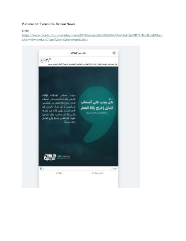 Publication: Facebook- Radaar News Link: https://www.facebook.com/radaarnews2019/posts/pfbid02tkWtKPw49qH2m3DT7Msk3LjwENhsc LSdrmEwjdmLcaDGqpT2q6fzQfovqmpnD2dLl