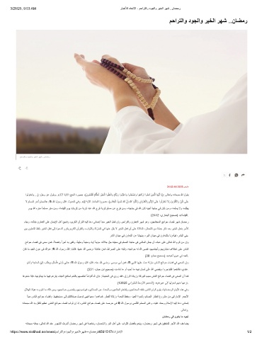 ءﺎﺟو ،ﮫﻧﺄﺷﺑ نوﺎﻌﺗﻟا ﻰﻠﻋ نﺎﻣﯾﻹا لھأ ﻊﺟﺷو ،مﯾرﻛﻟا نآرﻘﻟا ﮫﯾﻟإ ﺎﻋد ﻲﻧﺎﺳﻧإ أدﺑﻣ رﯾﺧﻟا لﻌﻓ نإو .مﺣارﺗﻟاو نوﺎﻌﺗﻟا رﮭﺷ وھو ،نﯾﺟﺎﺗﺣﻣﻟا ﺞﺋاوﺣ ءﺎﺿﻗ رﮭﺷ نﺎﺿﻣر