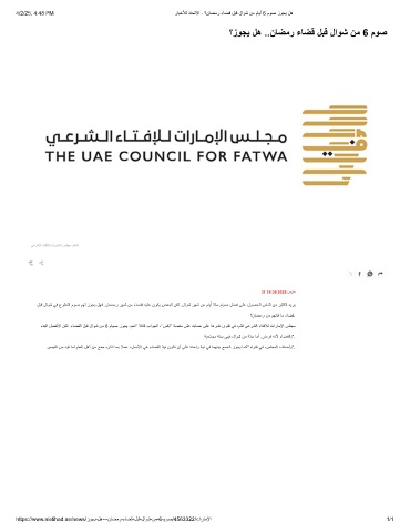 4/2/25, 4:48 PM رﺎﺑﺧﻸﻟ دﺎﺣﺗﻻا - ؟نﺎﺿﻣر ءﺎﺿﻗ لﺑﻗ لاوﺷ نﻣ مﺎﯾأ 6 موﺻ زوﺟﯾ لھ