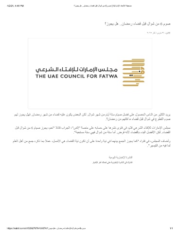 4/2/25, 4:48 PM ؟زوﺟﯾ لھ ..نﺎﺿﻣر ءﺎﺿﻗ لﺑﻗ لاوﺷ نﻣ 6 موﺻ | ﺔﯾﺗارﺎﻣﻹا دﺎﺣﺗﻻا ﺔﻔﯾﺣﺻ