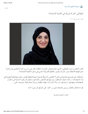 3/10/25, 1:04 PM ﺔﻣادﺗﺳﻣﻟا ﺔﯾﻣﻧﺗﻟا ﻲﻓ كﯾرﺷ ةأرﻣﻟا :ﻲﻟﺎطﮭﻟا | ﺔﯾﺗارﺎﻣﻹا ﺞﯾﻠﺧﻟا ﺔﻔﯾﺣﺻ