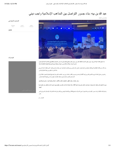ﺰﯾﺰﻌﺗو ﺔﯿﻣﻼﺳﻹا ﺐھاﺬﻤﻟا ﻦﯿﺑ ﻢھﺎﻔﺘﻟاو ﻞﺻاﻮﺘﻟا رﻮﺴﺟ ءﺎﻨﺑ ﻰﻟإ ،ﻢﻠﺴﻠﻟ ﻲﺒظﻮﺑأ ىﺪﺘﻨﻣ ﺲﯿﺋرو ﻲﻋﺮﺸﻟا ءﺎﺘﻓﻺﻟ تارﺎﻣﻹا ﺲﻠﺠﻣ ﺲﯿﺋر ،ﮫﯿﺑ ﻦﺑ ﷲ ﺪﺒﻋ ﺔﻣﻼﻌﻟا ﻲﻟﺎﻌﻣ ﺎﻋد