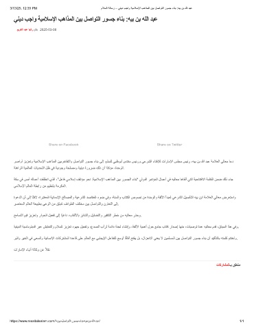 رﺻاوأ زﯾزﻌﺗو ﺔﯾﻣﻼﺳﻹا بھاذﻣﻟا نﯾﺑ مھﺎﻔﺗﻟاو لﺻاوﺗﻟا روﺳﺟ ءﺎﻧﺑ ﻰﻟإ ،مﻠﺳﻠﻟ ﻲﺑظوﺑأ ىدﺗﻧﻣ سﯾﺋرو ﻲﻋرﺷﻟا ءﺎﺗﻓﻺﻟ تارﺎﻣﻹا سﻠﺟﻣ سﯾﺋر ،ﮫﯾﺑ نﺑ ﷲ دﺑﻋ ﺔﻣﻼﻌﻟا ﻲﻟﺎﻌﻣ ﺎﻋد