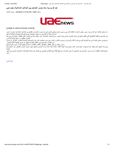 3/13/25, 12:40 PM UAE News - ﻲﻧﯾد بﺟاو ﺔﯾﻣﻼﺳﻹا بھاذﻣﻟا نﯾﺑ لﺻاوﺗﻟا روﺳﺟ ءﺎﻧﺑ :ﮫﯾﺑ نﺑ ﷲ دﺑﻋ - تارﺎﻣﻹا رﺎﺑﺧأ