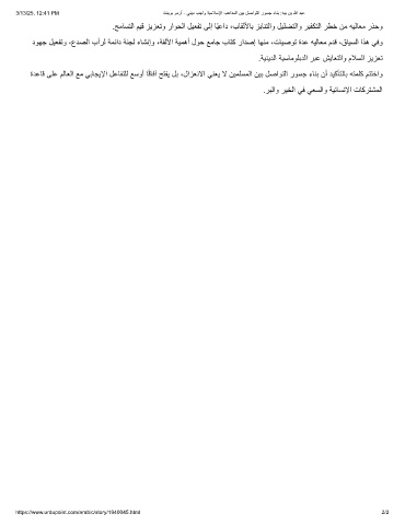 ةدﻋﺎﻗ ﻰﻠﻋ مﻟﺎﻌﻟا ﻊﻣ ﻲﺑﺎﺟﯾﻹا لﻋﺎﻔﺗﻠﻟ ﻊﺳوأ ﺎًﻗﺎﻓآ ﺢﺗﻔﯾ لﺑ ،لازﻌﻧﻻا ﻲﻧﻌﯾ ﻻ نﯾﻣﻠﺳﻣﻟا نﯾﺑ لﺻاوﺗﻟا روﺳﺟ ءﺎﻧﺑ نأ دﯾﻛﺄﺗﻟﺎﺑ ﮫﺗﻣﻠﻛ مﺗﺗﺧاو