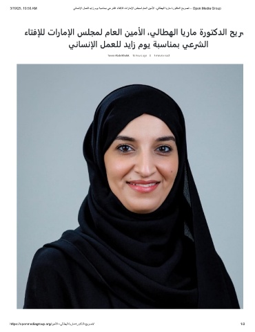 3/19/25, 10:56 AM ﻲﻧﺎﺳﻧﻹا لﻣﻌﻠﻟ دﯾاز موﯾ ﺔﺑﺳﺎﻧﻣﺑ ﻲﻋرﺷﻟا ءﺎﺗﻓﻺﻟ تارﺎﻣﻹا سﻠﺟﻣﻟ مﺎﻌﻟا نﯾﻣﻷا ،ﻲﻟﺎطﮭﻟا ﺎﯾرﺎﻣ ةروﺗﻛدﻟا ﺢﯾرﺻﺗ – Open Media Group