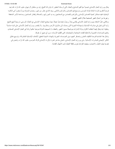 دﻌﯾ ﺎﻣﻛ ،هارﺛ ﷲ بﯾط ،نﺎﯾﮭﻧ لآ نﺎطﻠﺳ نﺑ دﯾاز ﺦﯾﺷﻟا ﷲ نذﺈﺑ ﮫﻟ روﻔﻐﻣﻟا ﺎھﺎﺳرأ ﻲﺗﻟا ءﺎطﻌﻟاو ﺢﻣﺎﺳﺗﻟا مﯾﻘﻟ ً ﺎﯾﺣ ًادﯾﺳﺟﺗ ﻲﻧﺎﺳﻧﻹا لﻣﻌﻠﻟ دﯾاز موﯾ لﺛﻣﯾ