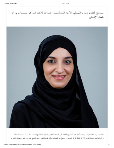 دﯾاز موﯾ ﺔﺑﺳﺎﻧﻣﺑ ﻲﻋرﺷﻟا ءﺎﺗﻓﻺﻟ تارﺎﻣﻹا سﻠﺟﻣﻟ مﺎﻌﻟا نﯾﻣﻷا ،ﻲﻟﺎطﮭﻟا ﺎﯾرﺎﻣ ةروﺗﻛدﻟا ﺢﯾرﺻﺗ