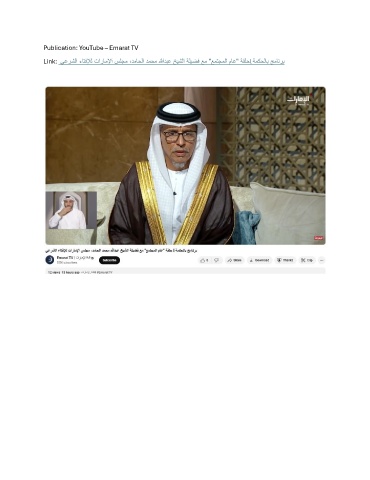 Publication: YouTube – Emarat TV Link: يعرشلا ءاتفلإل تاراملإا سلجم ،دماحلا دمحم اللهدبع خيشلا ةليضف عم "عمتجملا ماع" ةقلحl ةمكحلاب جمانرب