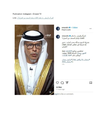 Publication: Instagram - Emarat TV Link: ؟لزنملا نم دجسملا مامإب ءادتقلاا مكح ام ..لجرلاو ةأرملل