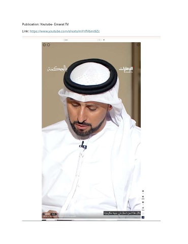 Publication: Youtube- Emarat TV Link: https://www.youtube.com/shorts/mYnTVbml9Zc
