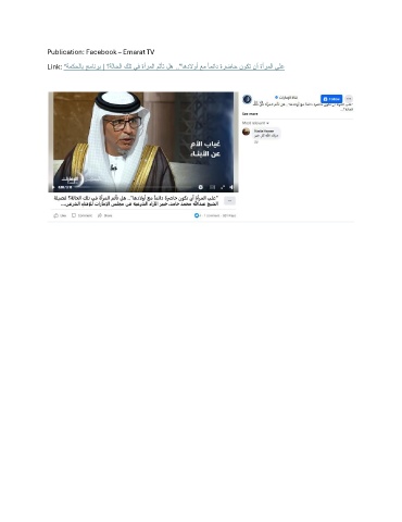 Publication: Facebook – Emarat TV Link: " ةمكحلاب جمانرب | ؟ةلاحلا كلت يف ةأرملا مثأت له .."اهدلاوأ عم ًامئاد ةرضاح نوكت نأ ةأرملا ىلع