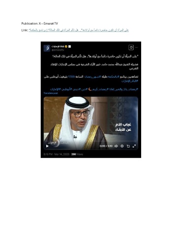 Publication: X – Emarat TV Link: " ةمكحلاب جمانرب | ؟ةلاحلا كلت يف ةأرملا مثأت له .."اهدلاوأ عم ًامئاد ةرضاح نوكت نأ ةأرملا ىلع