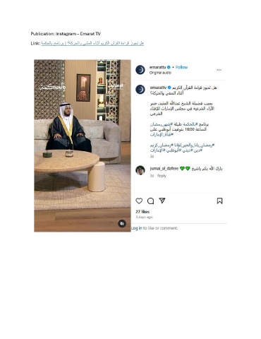 Publication: Instagram – Emarat TV Link: ةمكحلاب جمانرب | ؟ةكرحلاو يشملا ءانثأ ميركلا نآرقلا ةءارق زوجت له