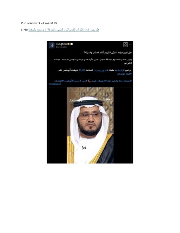 Publication: X – Emarat TV Link: ةمكحلاب جمانرب | ؟ةكرحلاو يشملا ءانثأ ميركلا نآرقلا ةءارق زوجت له