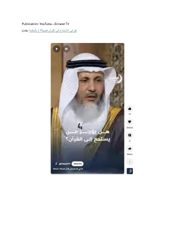 Publication: YouTube – Emarat TV Link: ةمكحلاب | ؟ةليضف نآرقلا ىلإ عامتسلاا يف له