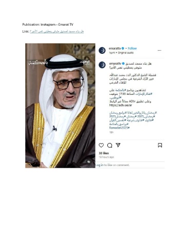 Publication: Instagram – Emarat TV Link: ؟رجلأا سفن ينيطعي ىفوتم قيدصل دجسم ءانب له
