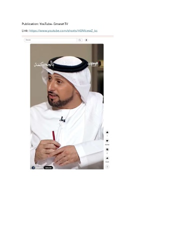 Publication: YouTube- Emarat TV Link: https://www.youtube.com/shorts/H0NfcewZ_kc