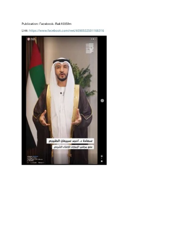 Publication: Facebook- Rak1035fm Link: https://www.facebook.com/reel/4090532501166316