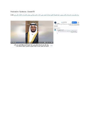 Publication: Facebook – Emarat TV Link: يعرشلا ءاتفلإل تاراملإا سلجم يف ةيعرشلا ءارلآا ريبخ دينجلا اللهدبع خيشلا ةليضف هيلع بيجي مركلاو ةحامسلا لوح مّيق لاؤس