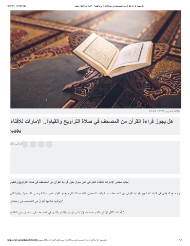 3/5/25, 12:02 PM بﯾﺟﯾ ءﺎﺗﻓﻺﻟ تارﺎﻣﻹا ..؟مﺎﯾﻘﻟاو ﺢﯾوارﺗﻟا ةﻼﺻ ﻲﻓ فﺣﺻﻣﻟا نﻣ نآرﻘﻟا ةءارﻗ زوﺟﯾ لھ